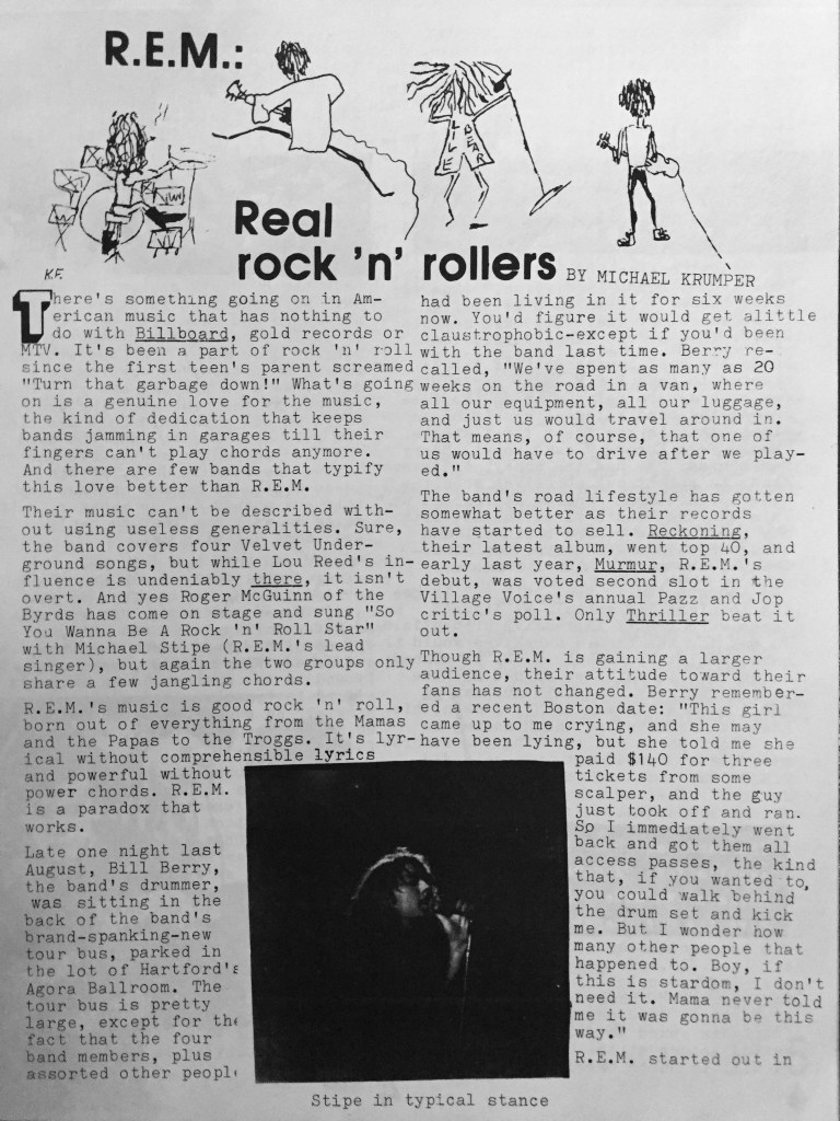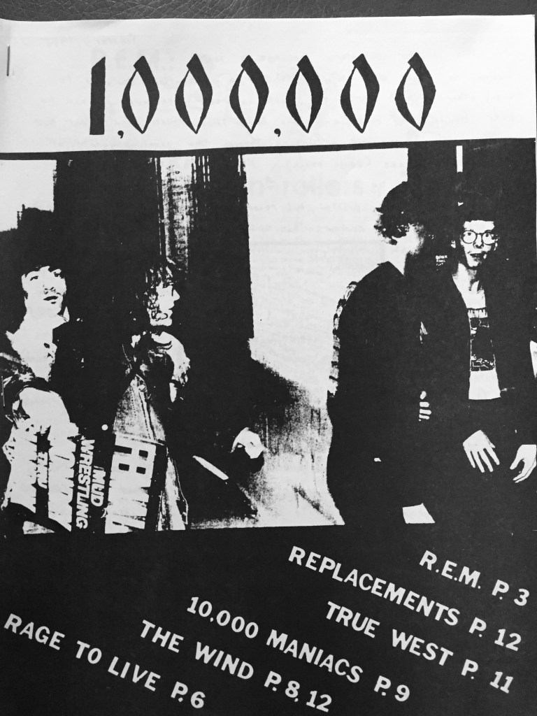 1,000,000 is an R.E.M inspired fanzine that I published in 1985 while I was still in high school. Chronic Town blew my mind after I found left on the radio dial. I put a bunch of postcards in the ladies room at an REM concert and got a lot of responses. Several people were key contributors (Michael Krumper, Allison Peck, Andrea Dalton, Melanie Klein) sending me snail mail. I covered all production and design duties before computers with lots of stickers and typewriter correction sheets on black construction paper. This was the only issue of 1,000,000. “Not only deadlier but smarter, too.”