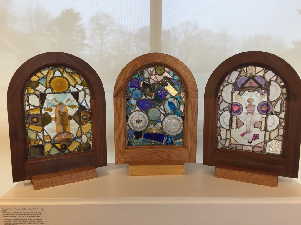 Cole’s daughters convinced her to publicly exhibit her work. One is singer Paula Cole, whose gig backing up Peter Gabriel inspired “The Rock Concert,” not shown at Fuller. It can be experienced in a video by Copper Hound Pictures, featuring concert footage, and the artist’s story of creating the seven foot tall stained-glass memory of one night in London. Click on “The Rock Concert” in Cole’s virtual gallery: https://www.stephaniecoleartist.com/gallery