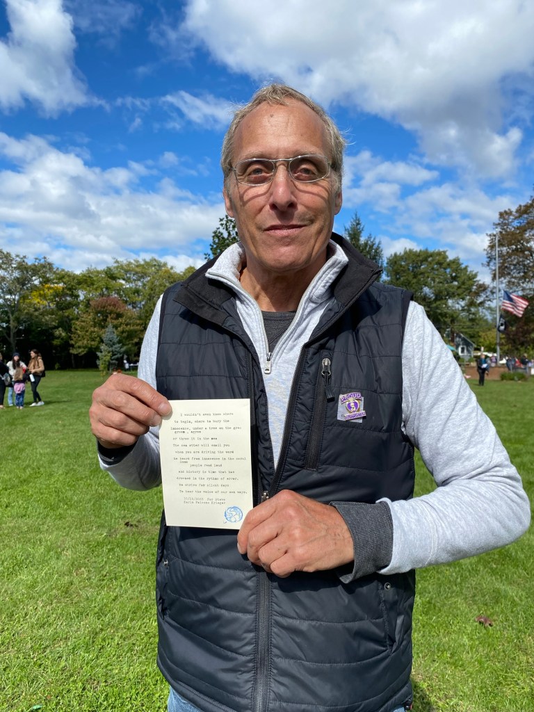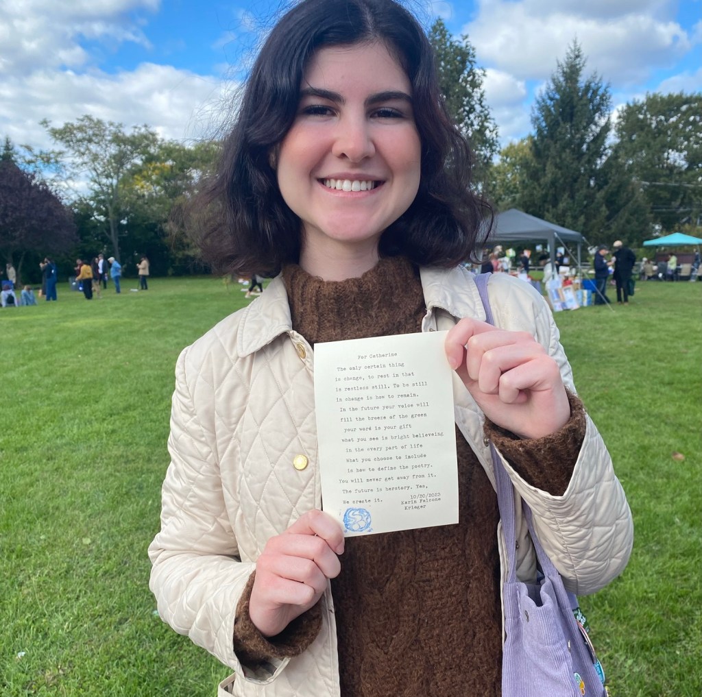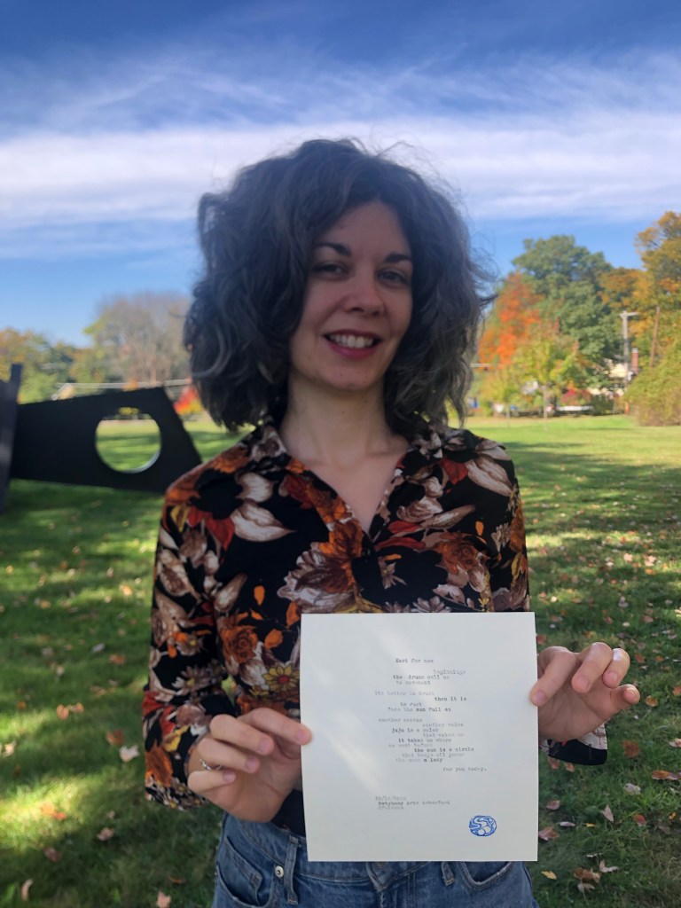 This family-oriented event is held outdoors, with all of the usual Fall Festival activities like pumpkin carving, but with a Bethany twist of making art and making art accessible, non-judgemental and fun for everyone of every age. I knew I would not be happy sitting indoors at a conference table making cut-ups with a few adults while a festival was going on outside. I needed to be at the festival, in the community. I couldn’t get the idea out of my mind. I pitched the Bethany folks my change of program to “Poems While You Wait,” and I waited to hear back from them.
