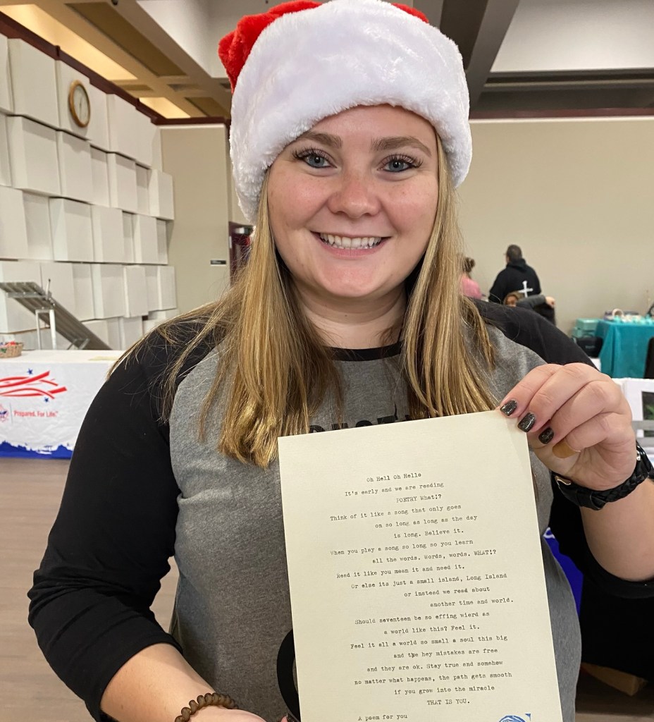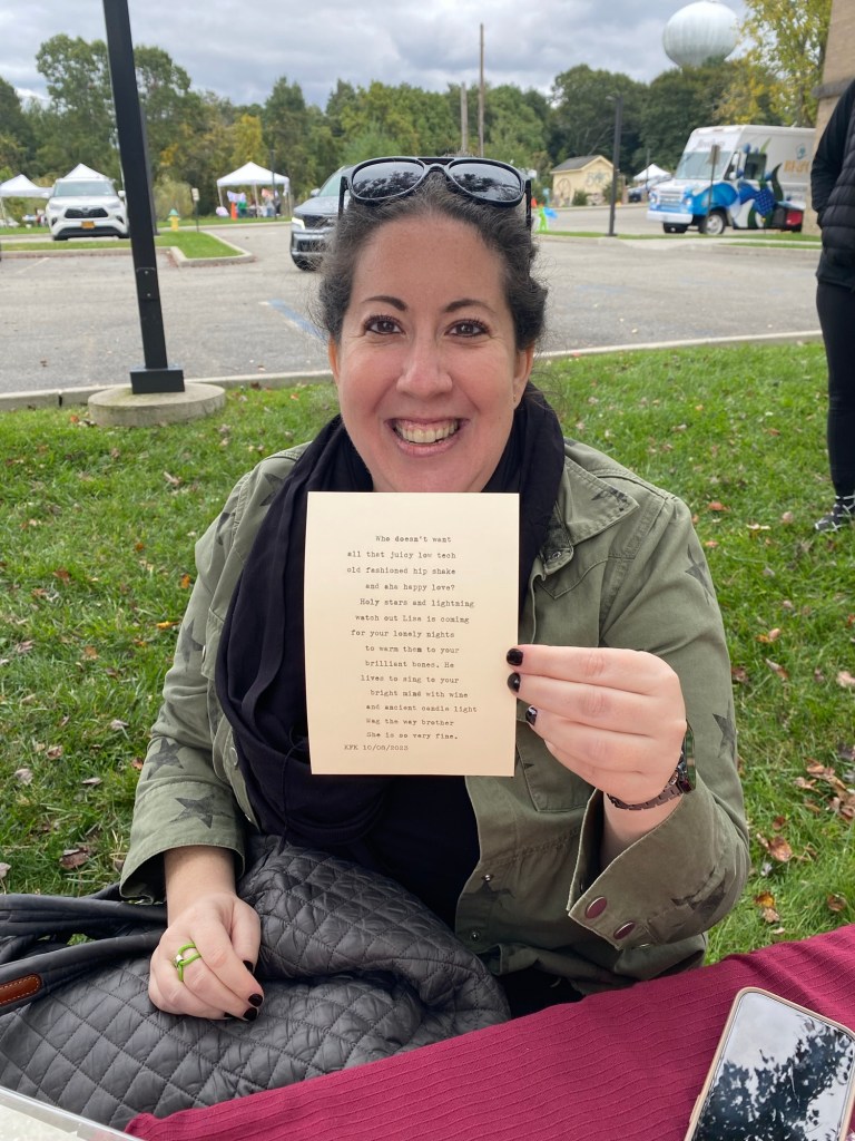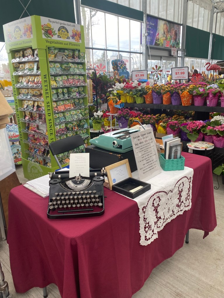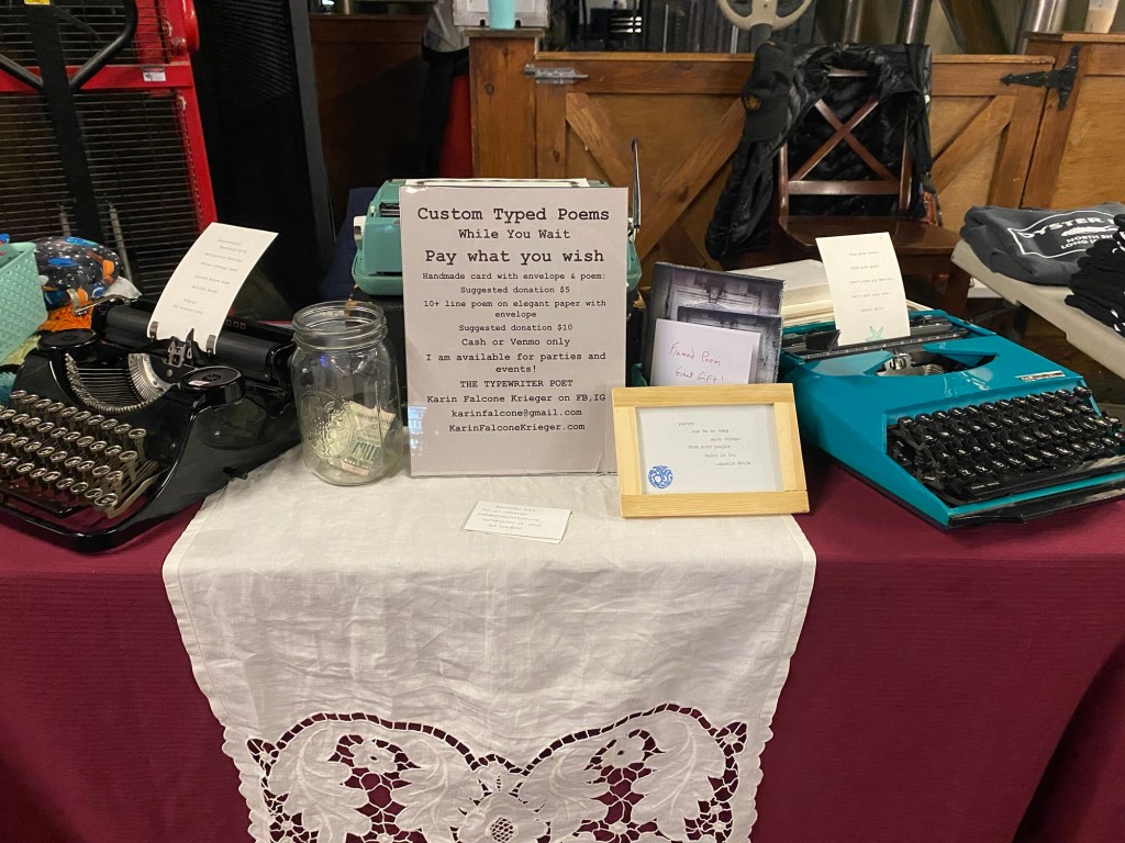 I type poems on the spot for anyone who requests one! I have typed hundreds of poems at dozens of events since 2022.
